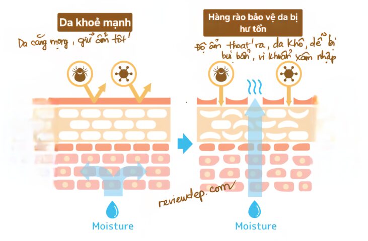- Dưỡng ẩm không chỉ giúp da đẹp mà còn bảo vệ hàng rào da, giảm khô và kích ứng.